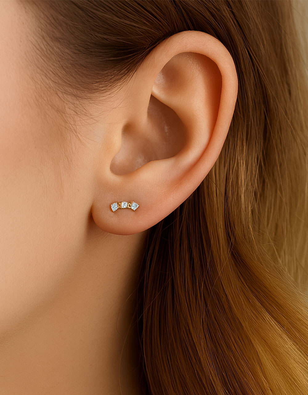 14K Gold Three Round CZ Labret Stud with Square Edge – Internally Threaded Lip Piercing Jewelry